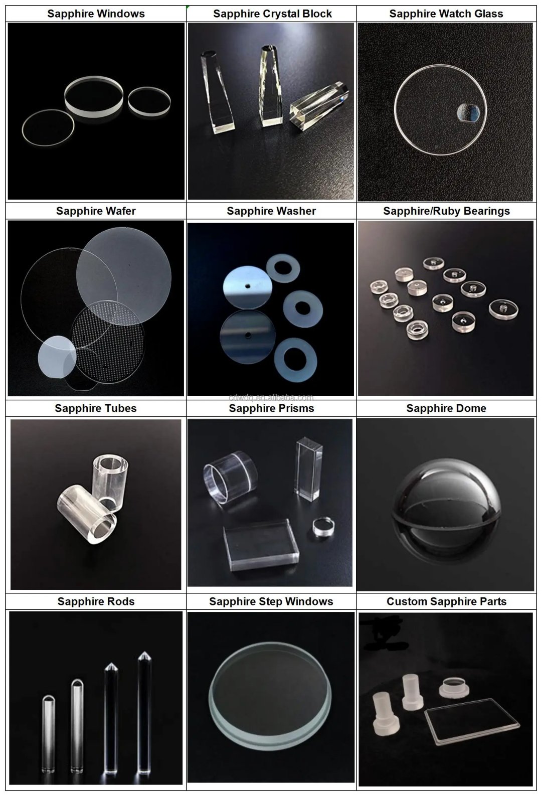 Sapphire is a single crystal aluminum oxide (Al2O3). It is one of the hardest materials. Sapphire has good transmission characteristics over the visible, and near IR spectrum. It exhibits high mechanical strength, chemical resistance, thermal conductivity and thermal stability. It is often used as window materials in specific field such as space technology where scratch or high temperature resistance is required